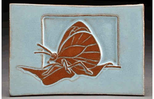 Best known for its metamorphosis from caterpillar to butterfly, this winged insect is a soft and gentle flutterer traveling from flower to flower. So fragile are a Butterfly's wings that a human touch will cause essential scales to be shed, impairing their flight. Despite the danger, Butterflies are often found landing on our arms and fingers. Now this beautiful flower-perched wanderer can be a delightful feature in any home's tile design; an attractive piece in any bathroom or conservatory.